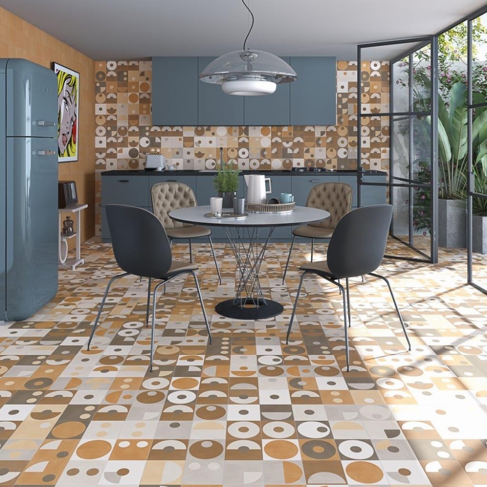 Wand en vloer, je kunt de patronen combineren met bijpassende effen tegels uit deze lijn. De effen tegels hebben genuanceerde contrast verschillen wat een sfeervol gemêleerd niet steriel beeld geeft. Deze geglazuurde tegels zijn zeer makkelijk in onderhoud en gerectificeerd dus mooi strak te leggen.