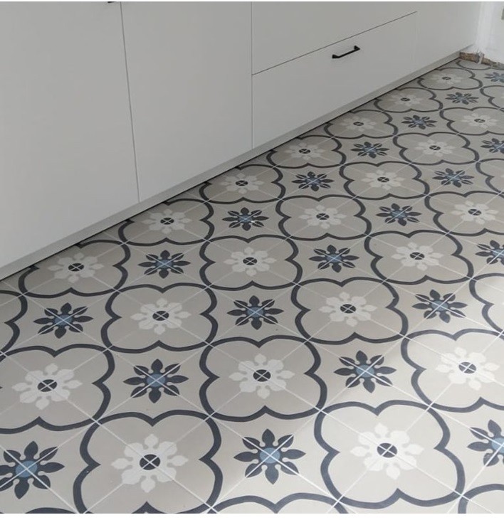 De Keramische Patroontegel Rochelle Sable is een slijtvaste retrotegel met een klassiek bloemmotief gebaseerd op de klassieke decors uit de eerste helft van de 20e eeuw.